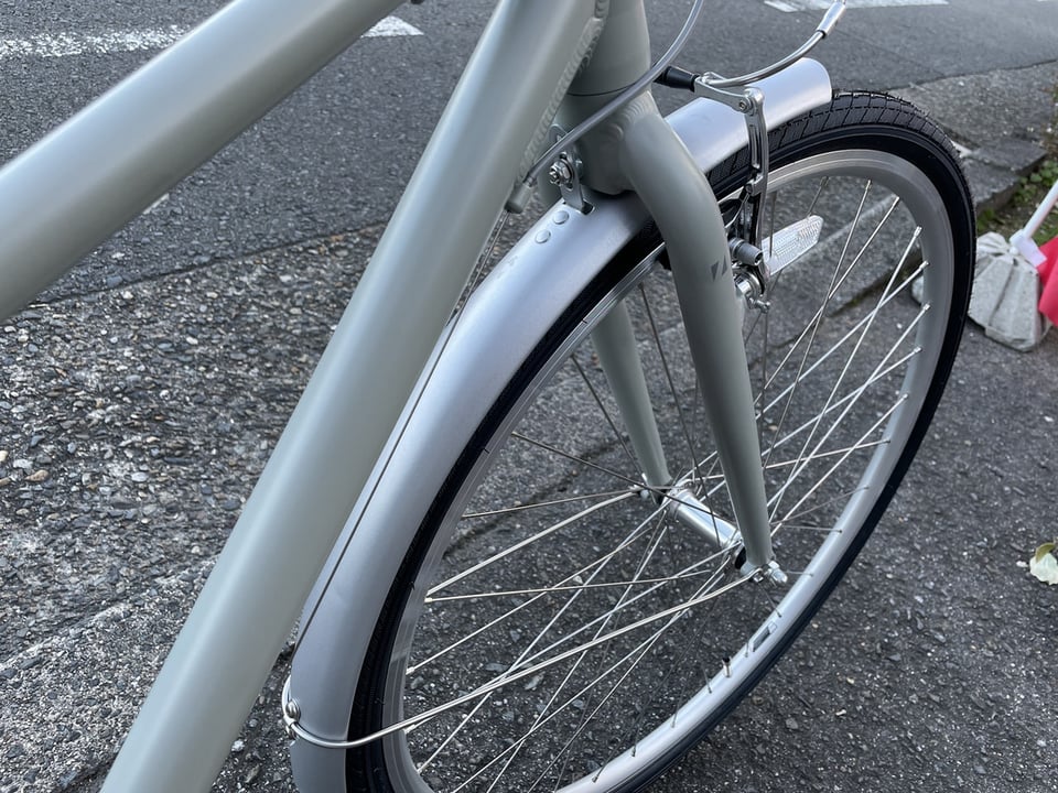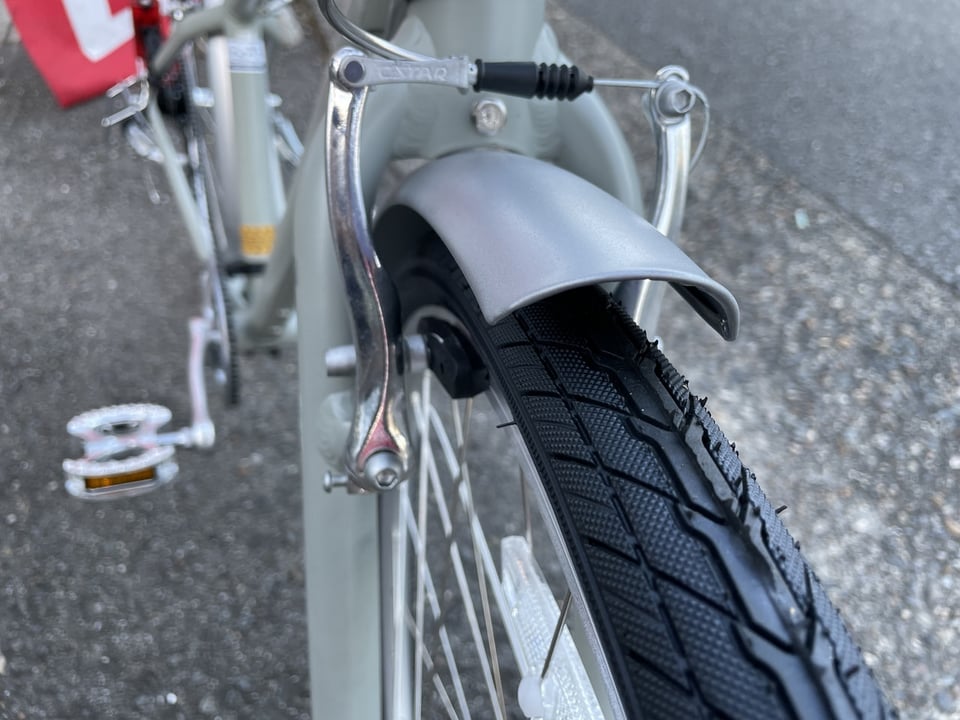 ブレーキは前後とも一般のクロスバイクと一緒のVブレーキ搭載で制動力も申し分なしです。