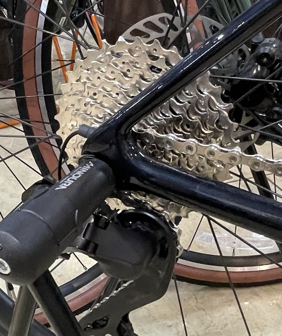 軽い坂道も登りやすく、平坦ではスピードも出しやすい、11-34Tと50/34Tの組み合わせ![]()