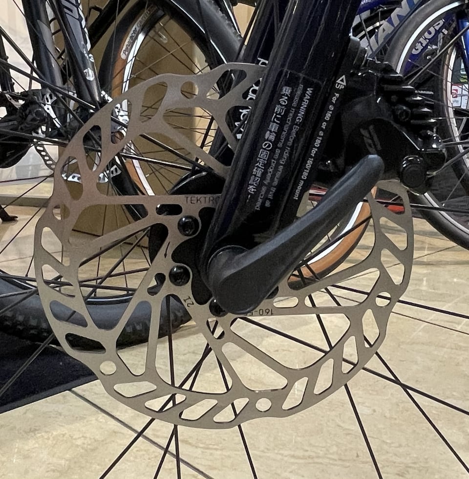 油圧ディスクブレーキ仕様 天候に左右されにくく安定して止まれる、前160mm・後140mmローターのブレーキ![]()