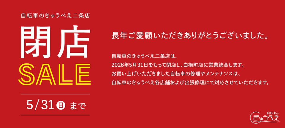 【セール】自転車のきゅうべえ二条店 閉店SALE開催!