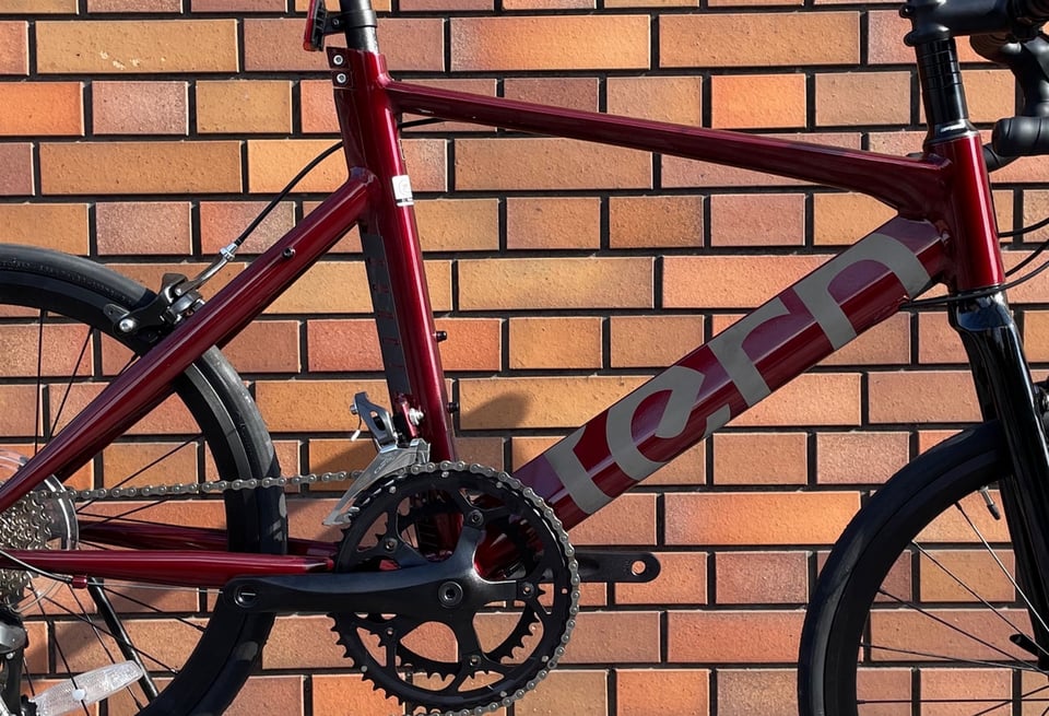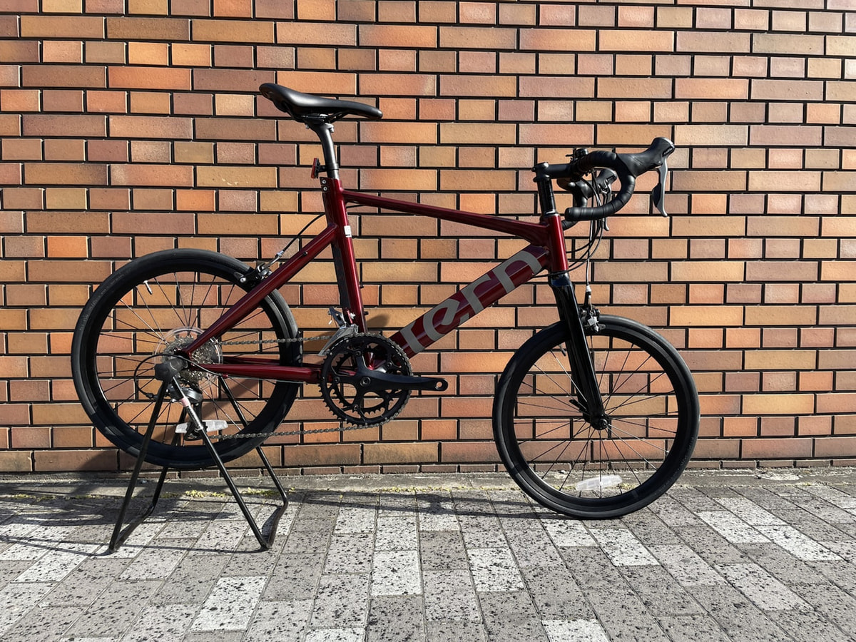 今回ご紹介するのはミニベロでおなじみのブランドTERNから発売されているSURGEのガーネットカラーです!深みのある赤が映えて、スポーティーさの中に大人っぽさも感じられる1台です。