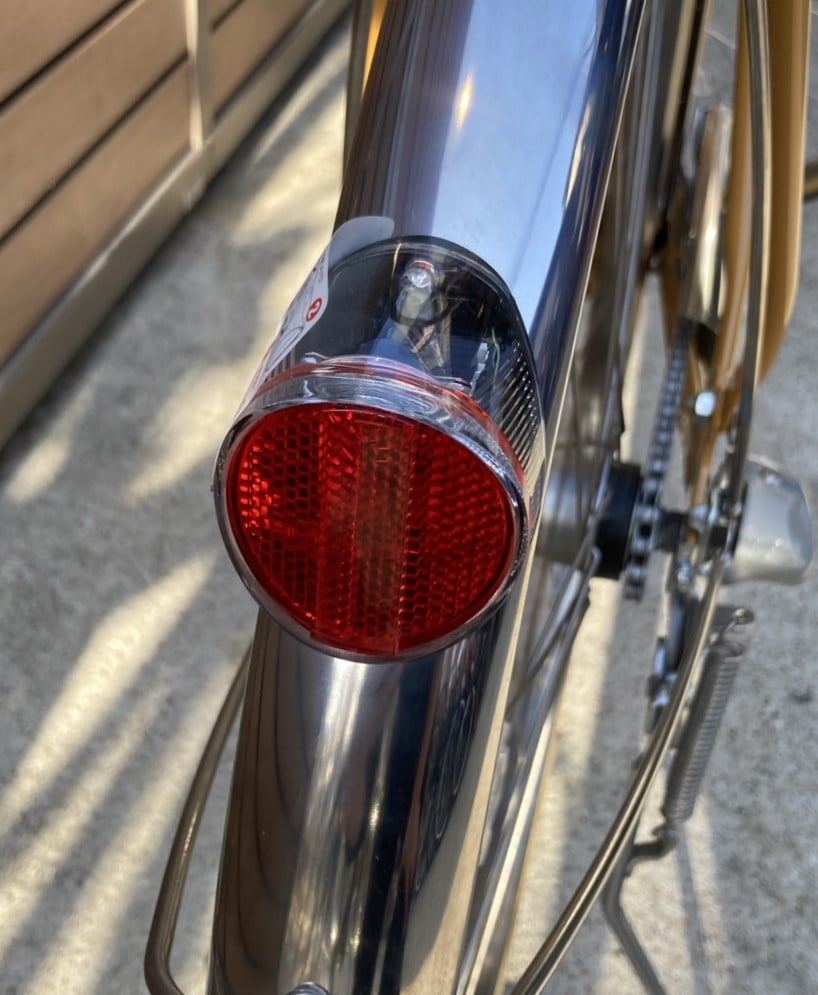 リアの反射板は反射するだけではございません!ソーラー充電式のオートライトになっているので、暗さと振動を感知して勝手に点灯してくれます。前後ともライトに抜かりなし!