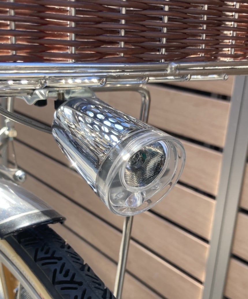 カゴの下には小さいのに広く照らしてくれるバレットデザインのライトがついてます。