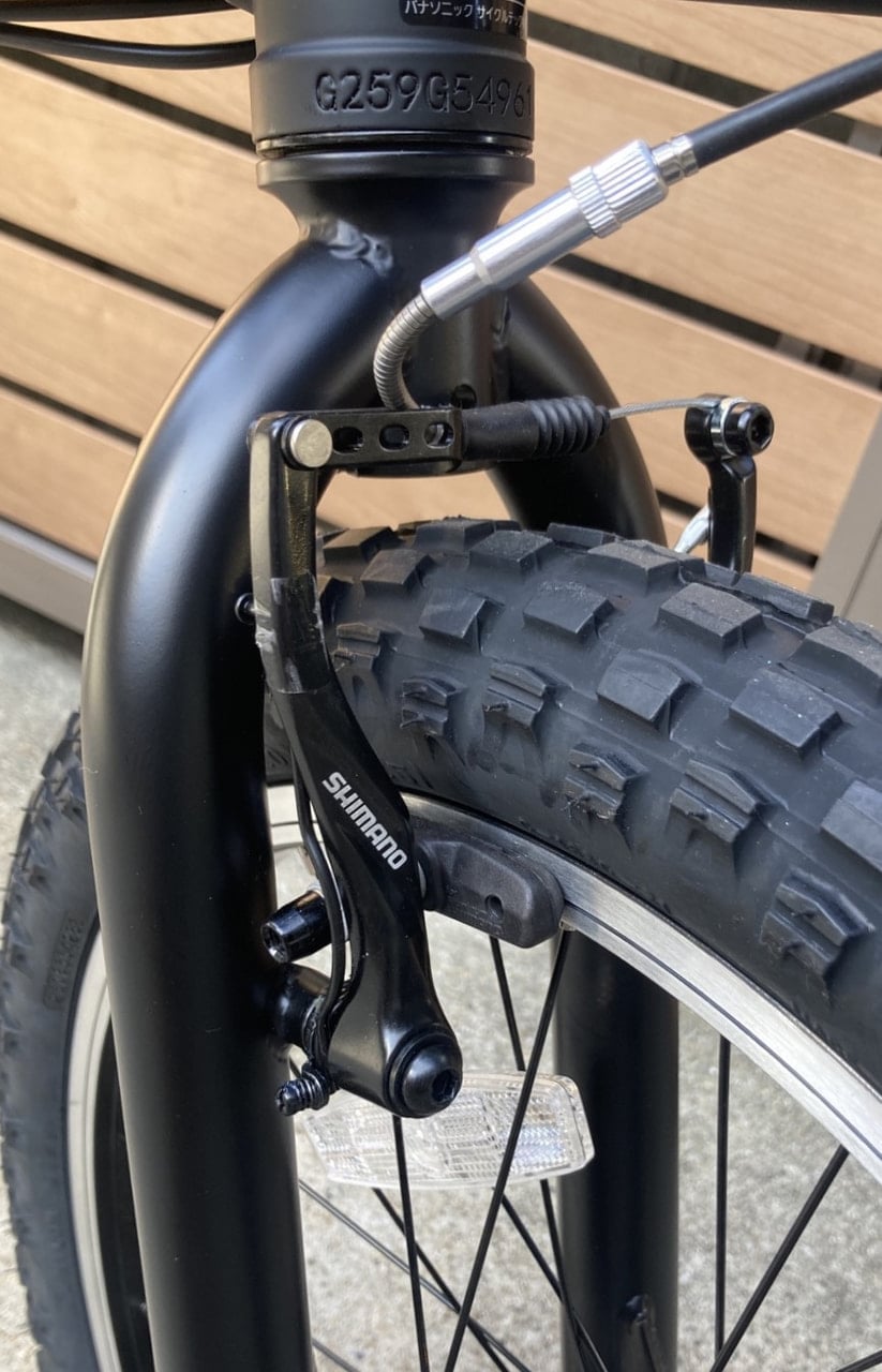 ブレーキは前後ともスポーツ自転車に良く使われているVブレーキが装着されてます。