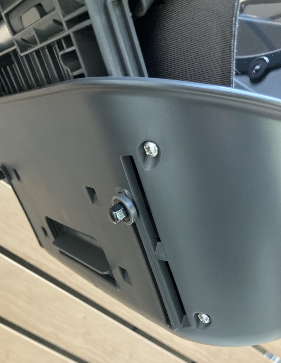 グリップバーの横のボタンを押しながら、バーを動かすだけで調整する事が可能。手前にしておくとお子さまを乗せる時にらくらくです。![]()