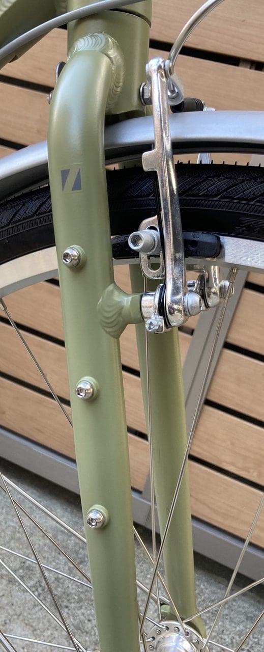 大人用クロスバイクでも上位モデルにしか採用されない軽量アルミ素材。フレームのヘッド周りからフォーククラウンまでを一体的に見せるために汎用フォークは使わずにオリジナル設計のフロントフォークを採用。初めて自転車に乗るお子さまでも一番運転しやすいステアリング設計がされています。フルフェンダー標準装備で、しかもバイクパッキング用のダボ穴をフォーク側面に3つずつ用意。どこまでカスタム幅を持たせているんだ!すごいですね~✨