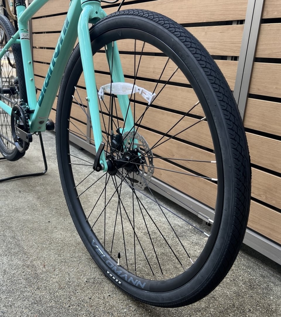 一般車並みに太いタイヤは安定感抜群で初めてスポーツバイクに挑戦される方でも、ふらつきにくくて安心してお乗りいただけます。