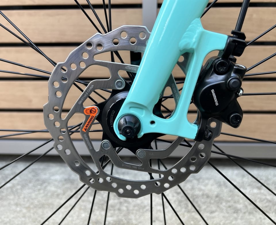 しっかり安心と信頼のシマノ製が使われているので、バッチリブレーキが効きます。