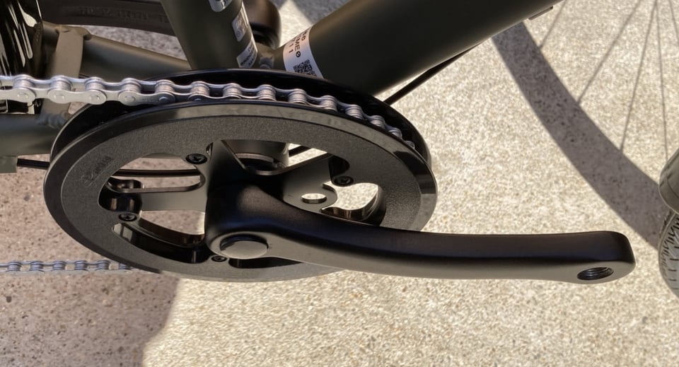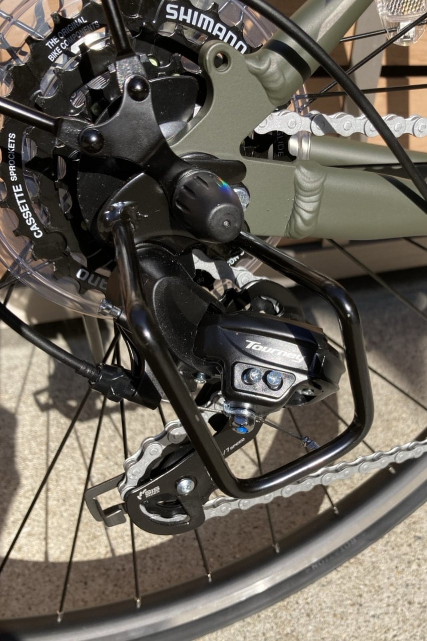 クランクにはチェーンリングを挟み込む形でバッシュガードが装備されてます。