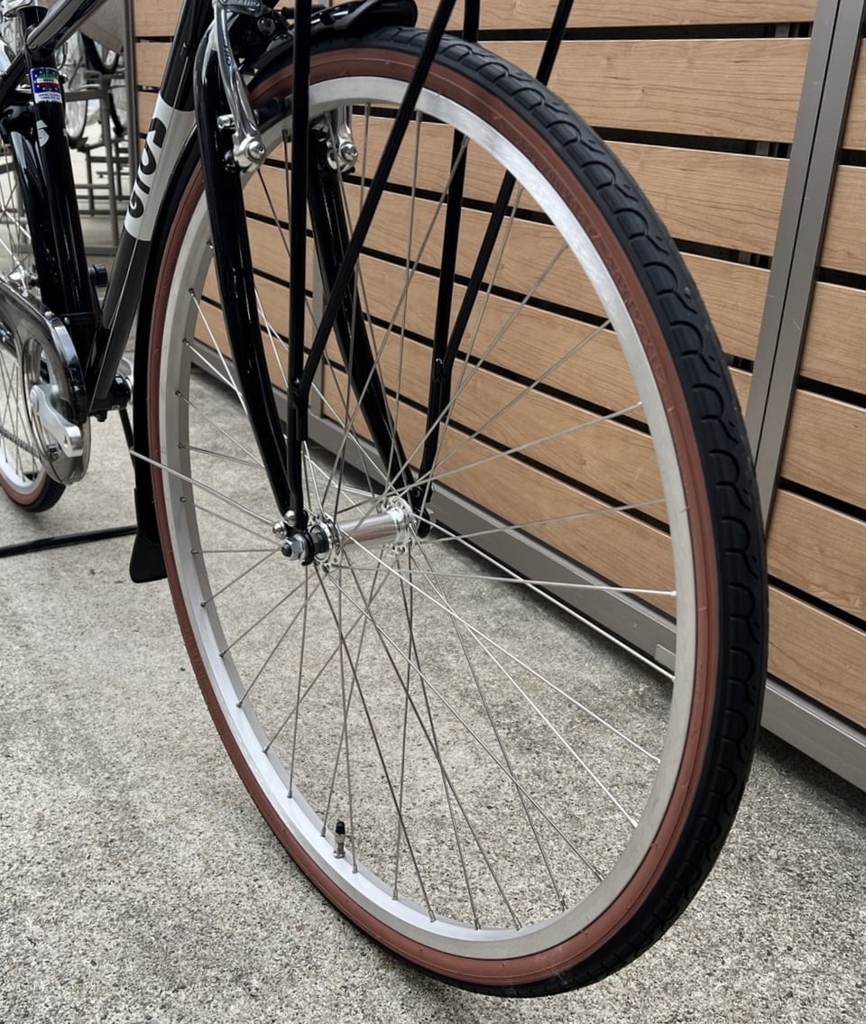 700×32cサイズのタイヤが装着されていて、LIEBE(リーベ)よりもタイヤサイズが大きい事によりスポーティな乗り味となってます。太さはLIEBE(リーベ)とあまり変わりないので、細すぎてハンドリングが不安定なんて事も無いので、初めてスポーツ自転車に挑戦される方にも安心してお乗り頂けます。