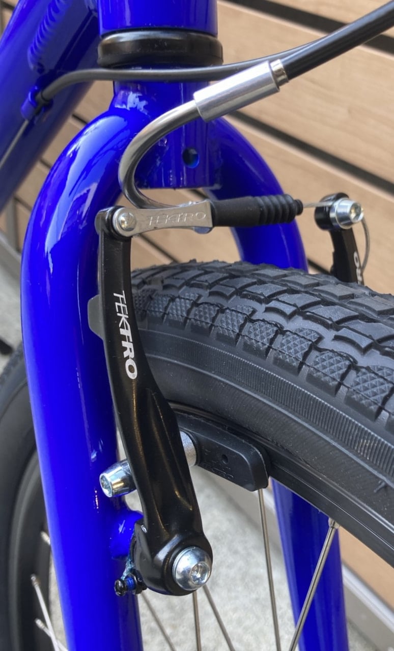 ブレーキは本格的なクロスバイクにも採用されているVブレーキが付いてます。