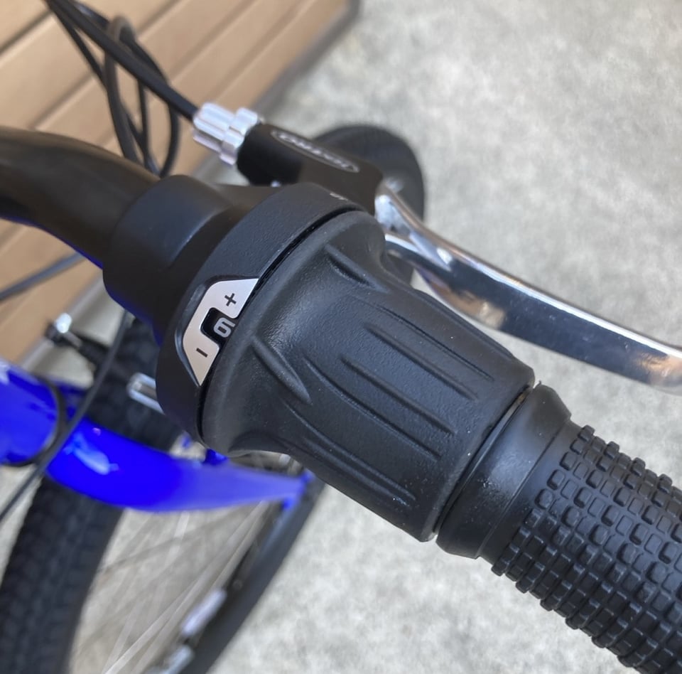 6段変速あり、右手にグリップシフターが付いていて、ひねるだけで変速する事が可能。