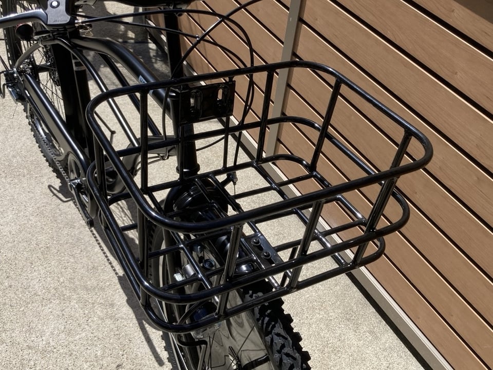 前カゴを大きめ物に交換しても、車体が大きいのでアンバランスになりにくそうです。![]()