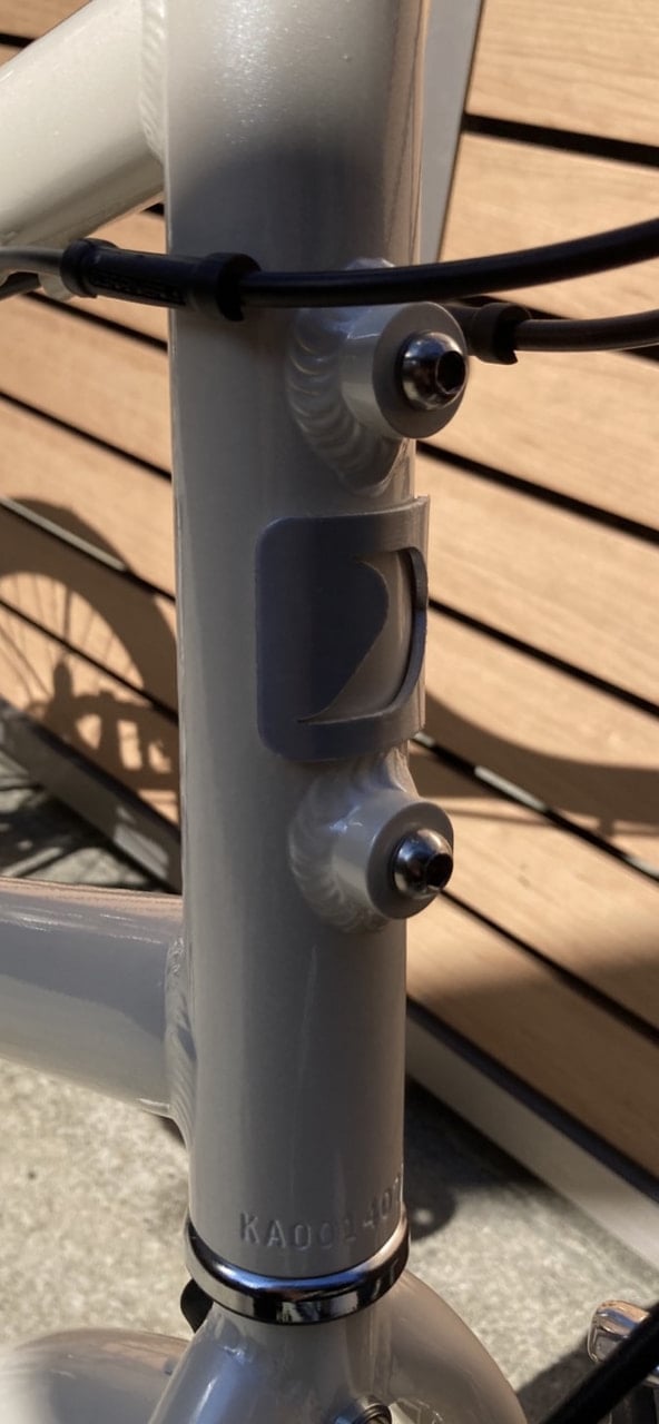 ヘッドチューブにアクセサリー台座が溶接されているので、前に純正のキャリアやバスケットを取り付ける事が可能。