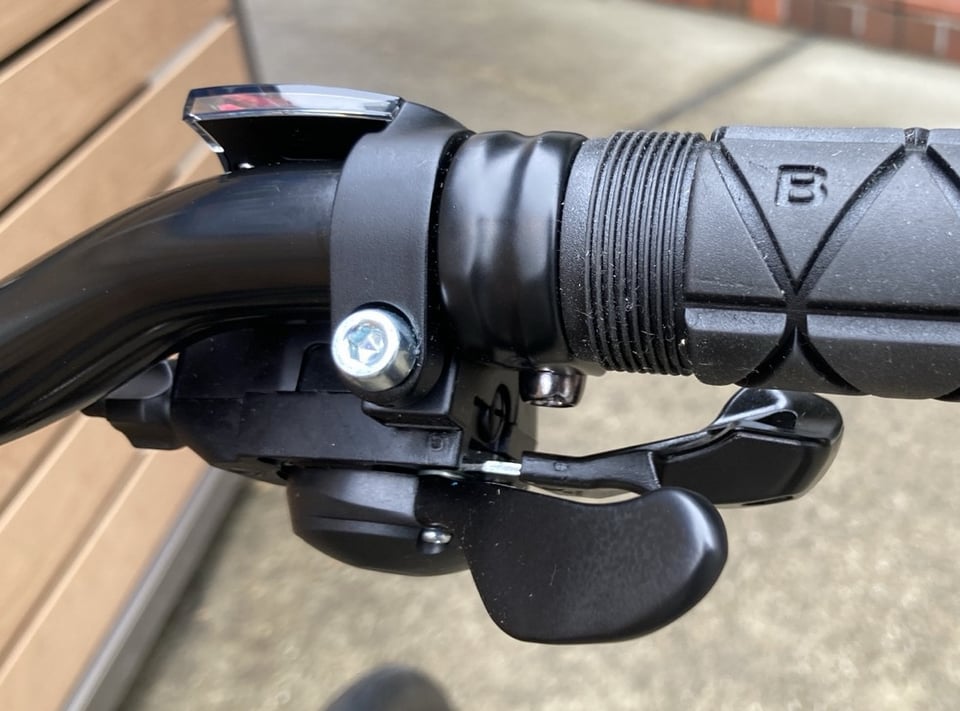 レバーにはフラットバーコンポーネントのSORAグレードの変速レバーが装備されていて、変速のタッチが軽くて気持ちいいです。