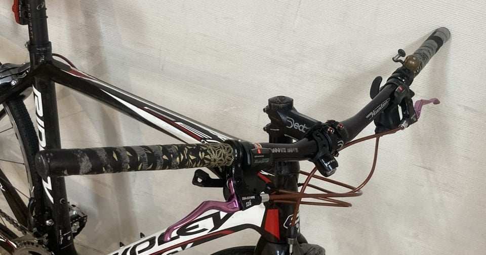 このハンドルバーはめちゃくちゃ調子いいです。いろんなワイドハンドルバーを使ってましたが、長距離走ると手首が痛くなってました。しかし、こちらのハンドルバーは絶妙なスイープベンドで手首への負担があまり無いです。体格により感じ方は人それぞれだと思いますが、私のように小柄で肩幅狭いけど、広めのハンドルバー使いたい方にぜひ使って欲しい1本です。ブレーキレバーにはダイアコンペのSS6を入れてます。定番のブレーキレバーでメチャクチャ引きが軽くて使いやすいです。ロードバイクをフラットバーにするメリットとしてブレーキレバーをフラット用の物に変えると引きやすくなるという事があります。STIレバーとかになると年式によっては手の小さい方だと、どうしてもレバーが引きにくい物があると思いますが、フラット用は基本的にどれを使っても引きやすくなると思います。街乗りはキャリパーブレーキ×キャリパーレバーが最強だと思います。引きが軽くて、メンテナンスが楽。調整もズレも少ないので良いですよ~(リムブレーキは悪天候に弱いやんとか言わない!)![]()