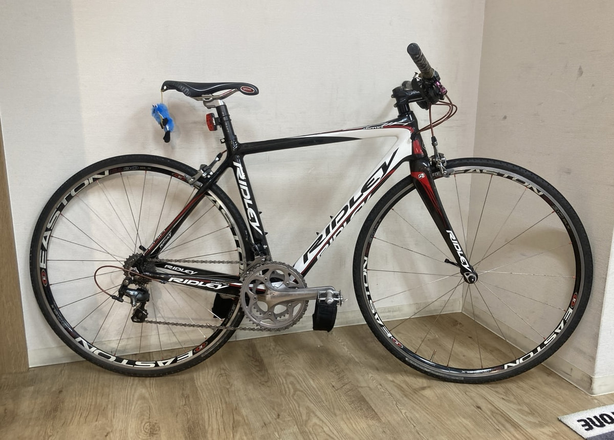 クロモリロードを街乗りカスタムする物は数多く見たことがありますが、あまり見ないアルミ・カーボンのフラットバー化。アルミ・カーボンのレースバイクは派手なデカールの物が多いので、フラット化するとピストバイクのようなルックスになるので、次のカルチャーに成り得ると思うので、ぜひカスタムのご検討お願いします。