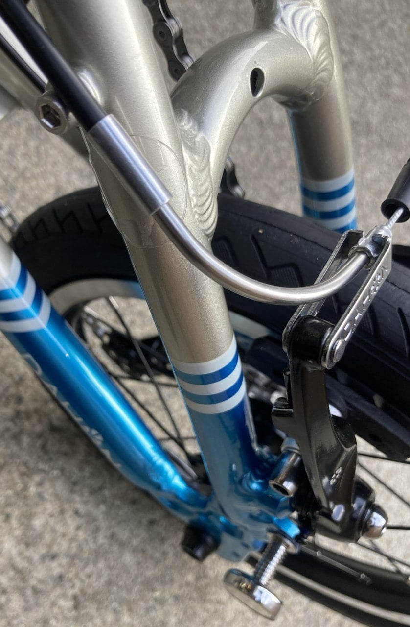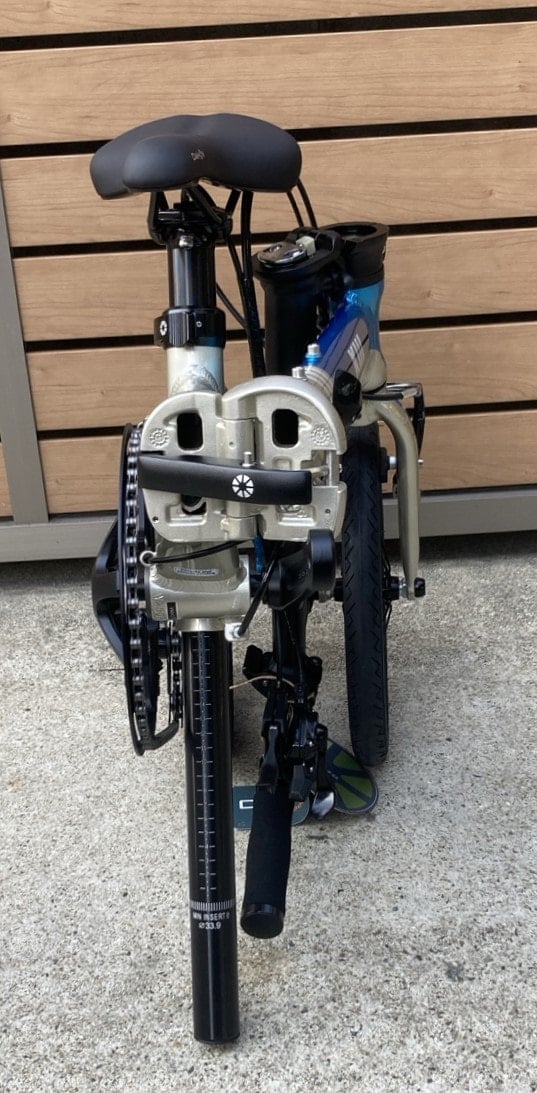 折りたたむとかなり小さくなります。車体重量が8.2kgとかなりの軽量モデルとなってます。フォールディングバイクの中でも、かなり軽量な部類になるので輪行される方や、自転車を自分の部屋に持って入らないといけない方など、車体を持ち上げる必要がある方に人気の車体となってます。