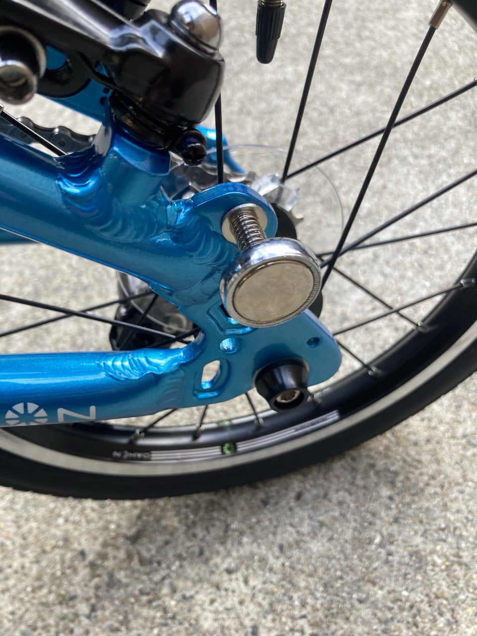 フレームに磁石が付いていて、たたんだ時に磁石同士が引っ付き持ち運ぶ時に車体が暴れる事も少なく安心です。