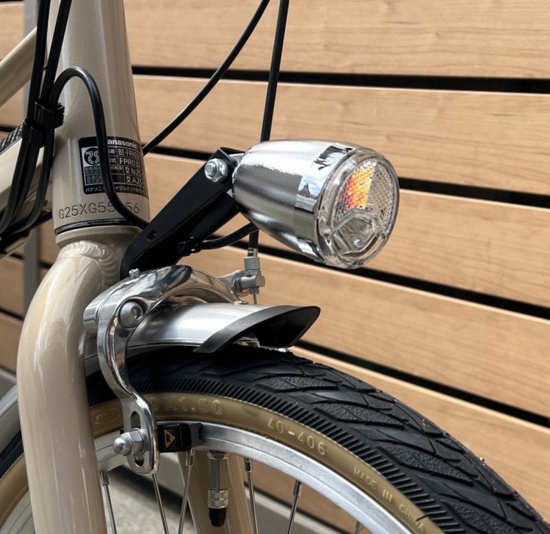 ランプヘッドはリフレクターと一体式なので、ライトがついてない時でも光を反射してくれます。広範囲を照らしてくれるライトになっているので暗い道でも安心です。