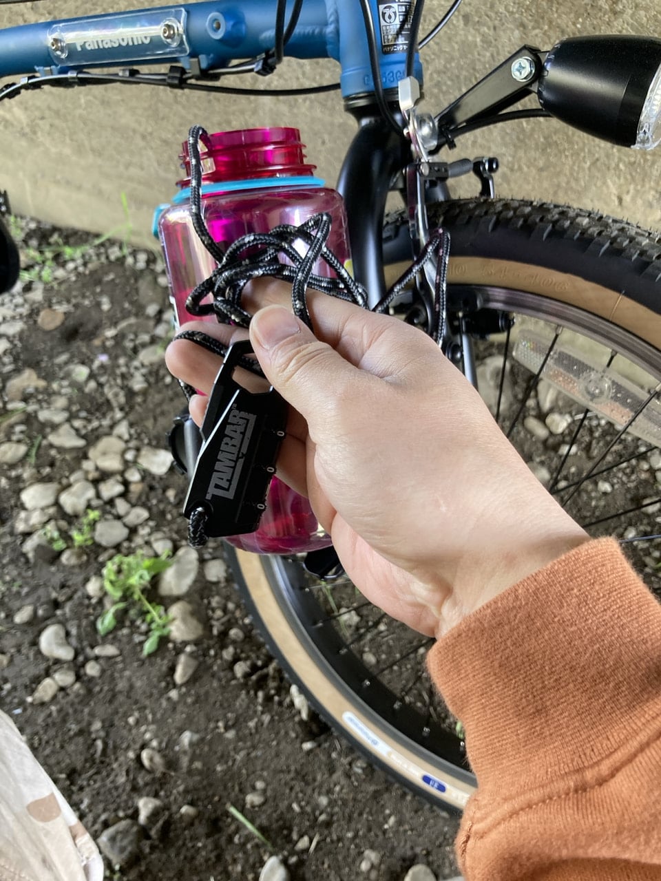 鍵ってどこに置いておこうか地味に困りませんか?バックに入れると違うバックを持って行った時に鍵を忘れたり、ハンドルにかけて置くとハンドルが傷つくし。そんな時にはツールボトルに入れたりするんですが、今回はナルゲンボトルに入れました。結構容量が入るので、私は補給食と携帯工具なんかも入れてます。