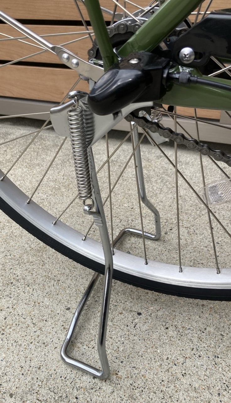 スタンドはL型でテコの原理で軽く車体を駐輪する事が出来る、かろやかスタンドが装備されています。