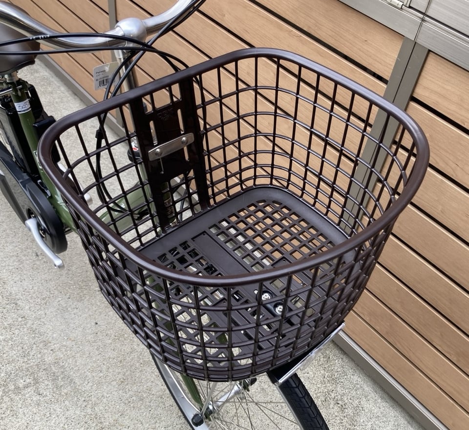 前カゴにはお買い物で活躍してくれること間違いなしの大型樹脂バスケットが装備されてます。