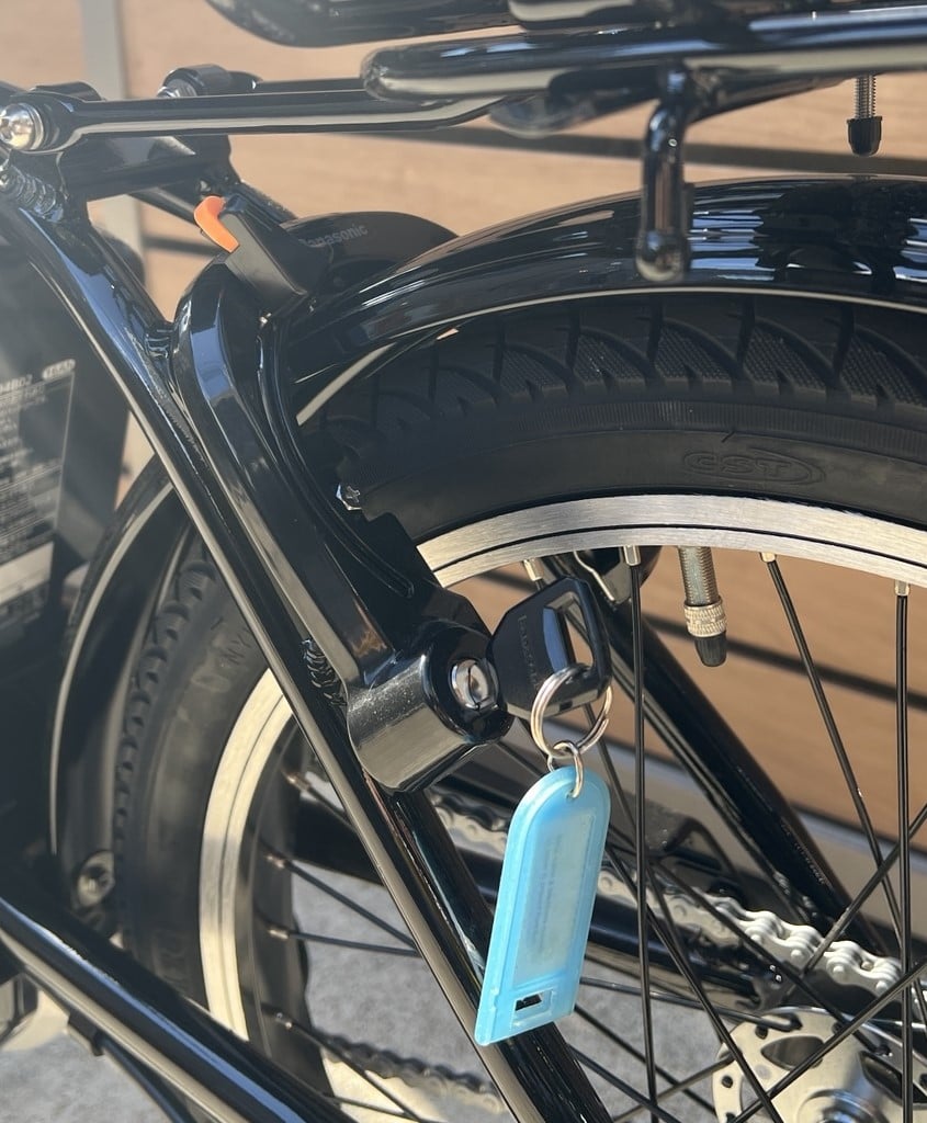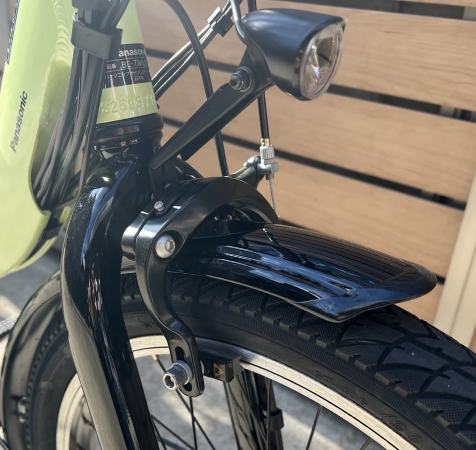 そんな私のロードバイクにも付いている装備を当店試乗車の特定小型のPanasonic(パナソニック)MU(エムユー)に取付させて頂きました!それがこちら。