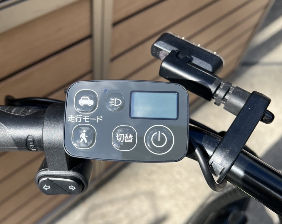 電動アシスト自転車とほとんど同じです。手元にスイッチがあり、こちらの電源を押します。