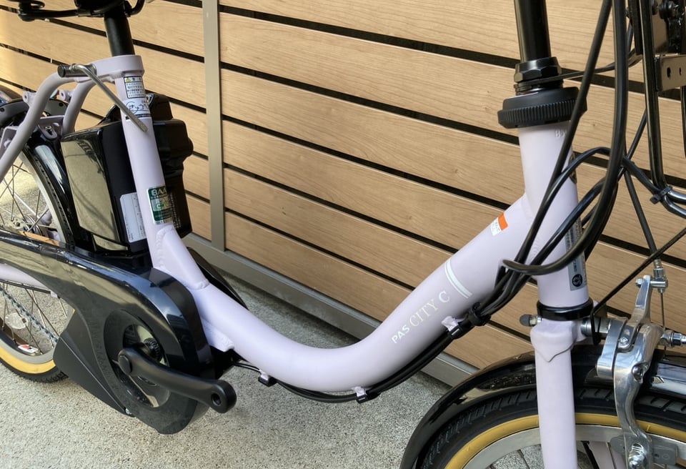 桜カラーのコンパクトな電動アシスト自転車!廃色のカラーなので、こちらのカラーが気になっている方には手に入れる最後のチャンスかも、最新モデルから前カゴが標準装備になっていますが、前キャリアにカゴが付いているタイプでは無くなったので、キャリア取付タイプのカゴが付かなくなってしまいました。。。