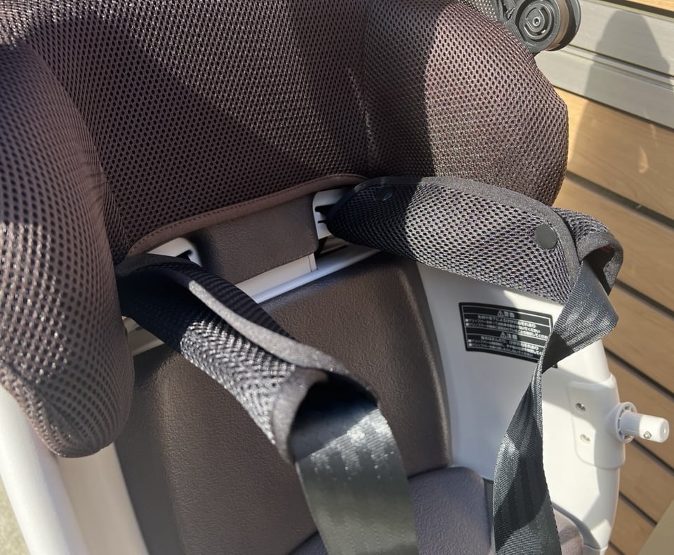 お子さまが乗っていない時も立体的に立ち上がっている肩ベルト。