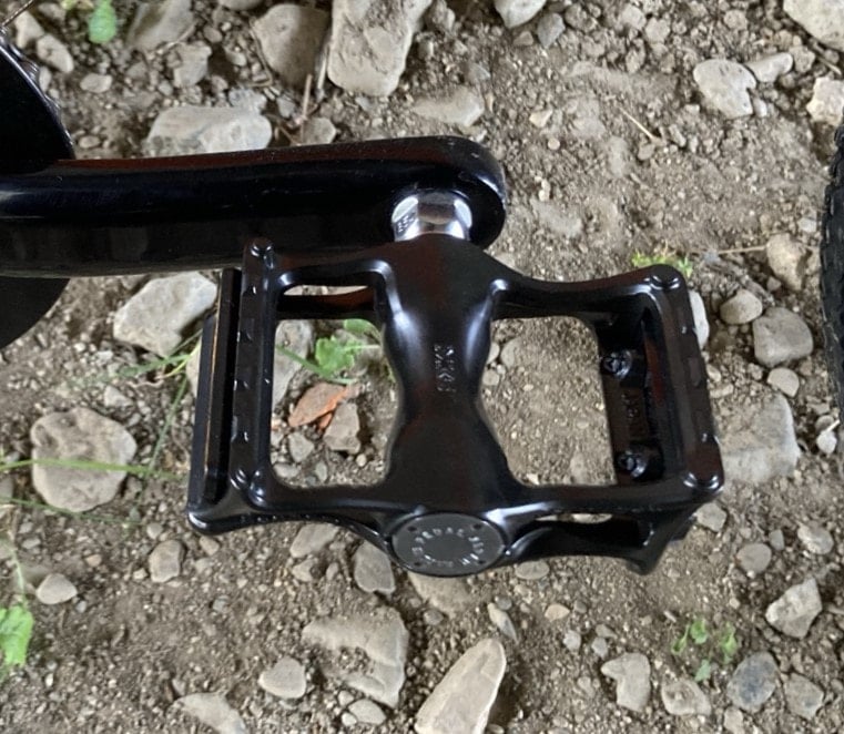 太めのタイヤとコントラストを出すために細めのスリムなペダルをチョイス。見た目も良いでしょ?![]()