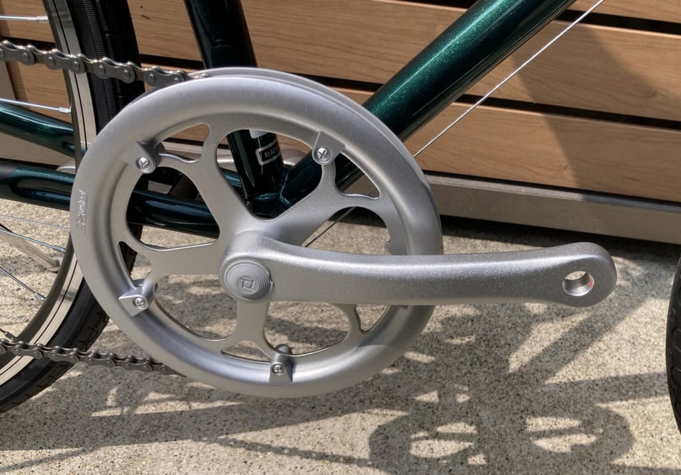 チェーンを挟み込む形でバッシュガードが付いているので、チェーンが外れる心配も少なくて済みますね。ズボンの裾を巻き込む心配も無いので安心です。![]()