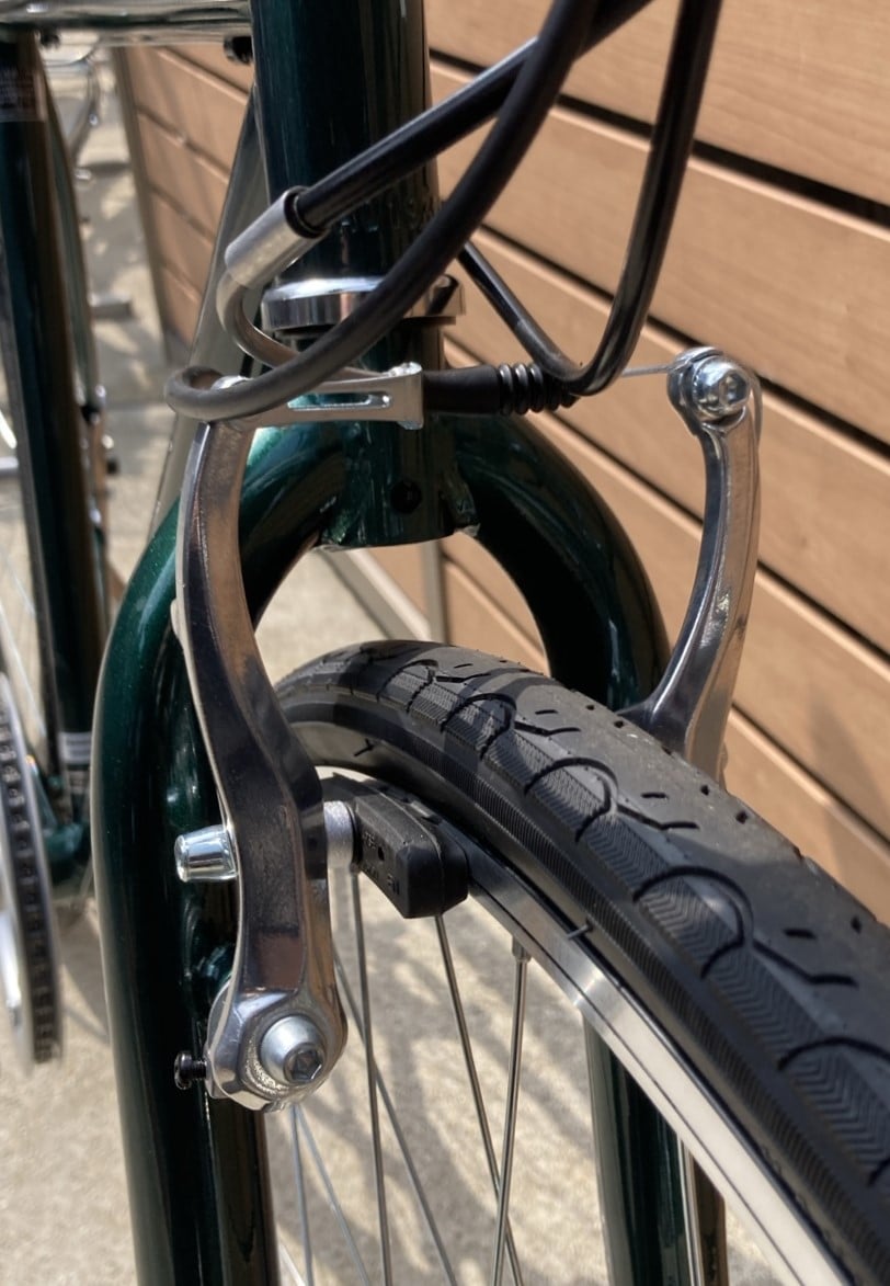 ブレーキにはクロスバイクにもよく使われているVブレーキが採用されてます。