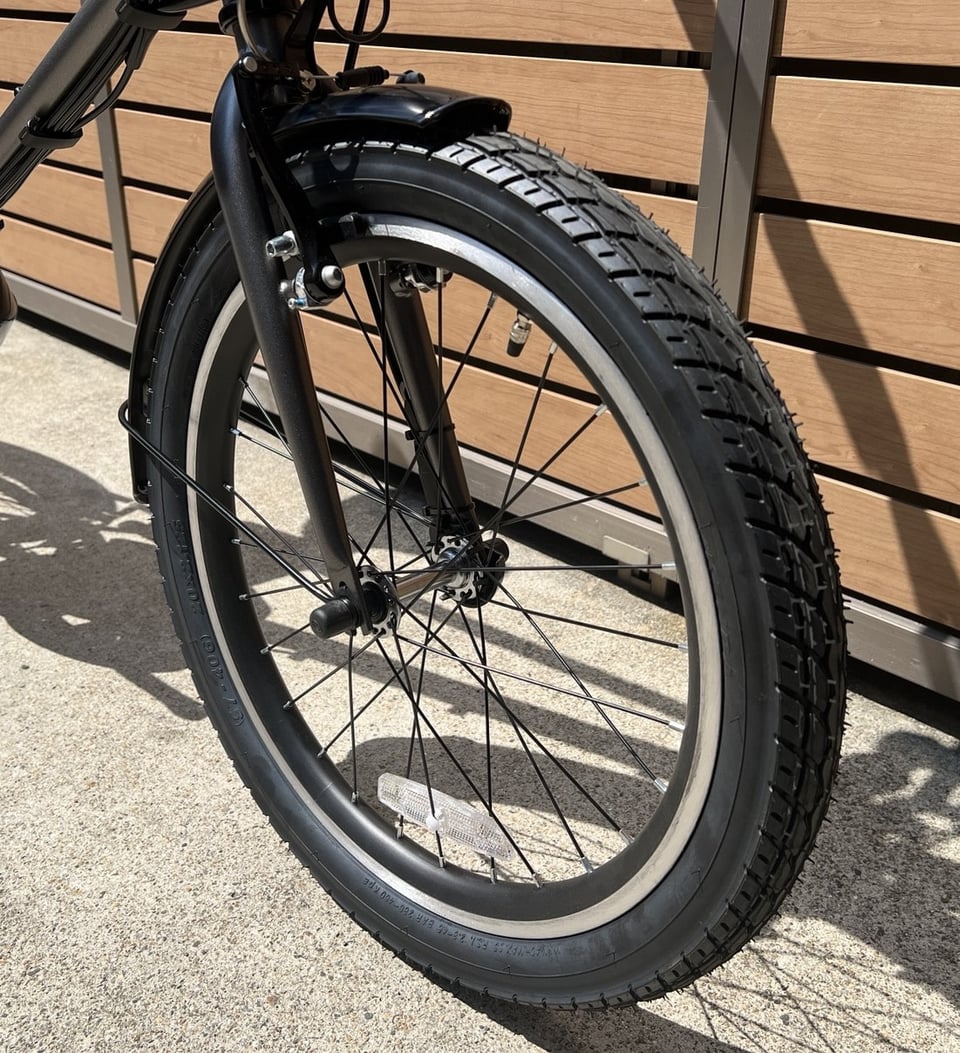 太めのタイヤは安定感のある快適な走り心地で街中の段差もスムーズに乗り越えられます。