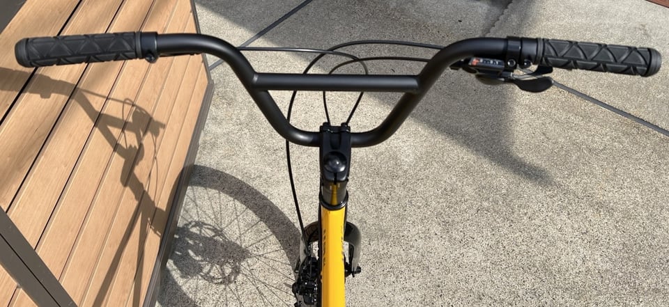 まず、ハンドルバーはBMXを彷彿とさせるハイライズなハンドルバーが採用されてます。このおかげでハンドルグリップが高い位置にあり、前傾姿勢になりにくくリラックスしたポジションで乗る事が出来ます。