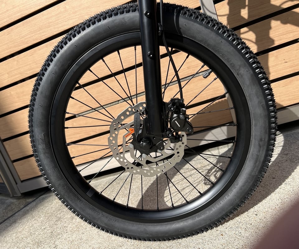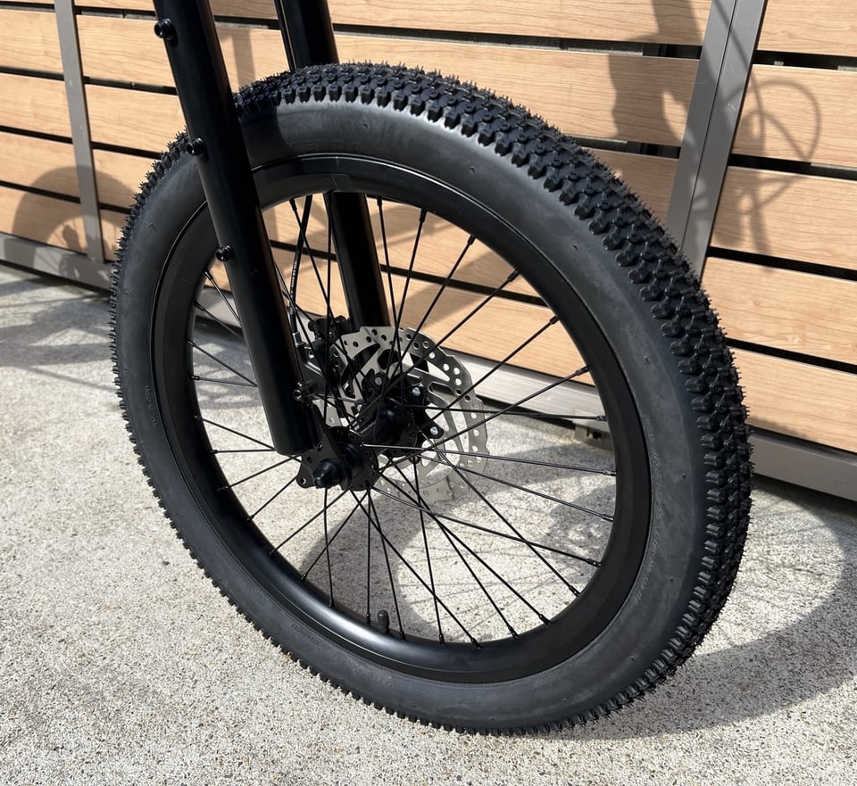 タイヤには20X2.10の極太ブロックタイヤがインストールされてます。