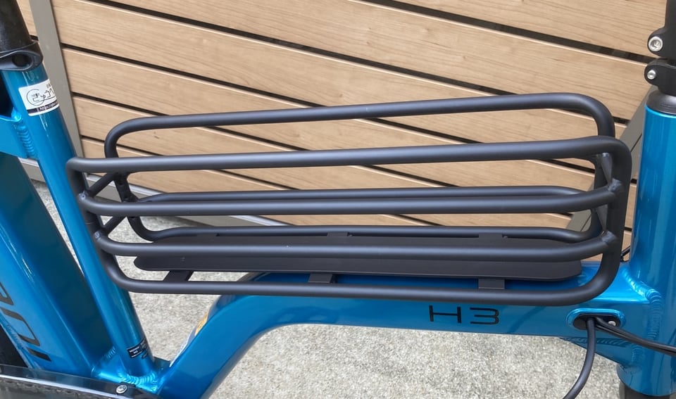 フレームにバスケットを取り付けるためのアクセサリー台座が付いてますので、追加でフロントバスケットを取り付ける事が可能です。また、フレームにカゴが付くので、重たい荷物を積んでもハンドル操作に影響が出にくく安全に走行する事が出来ます。![]()