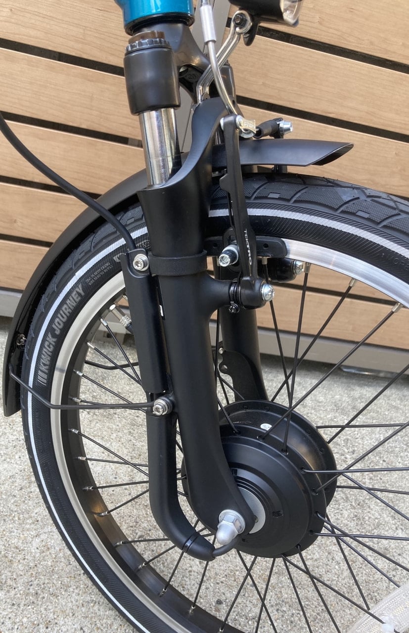 国内モデルにはあまり無い、サスペンションが付いたフロントフォークが装備されているので、細かい振動や段差を乗り上げた時の衝撃を体に伝わる前に吸収してくれます。乗っていて快適です。![]()