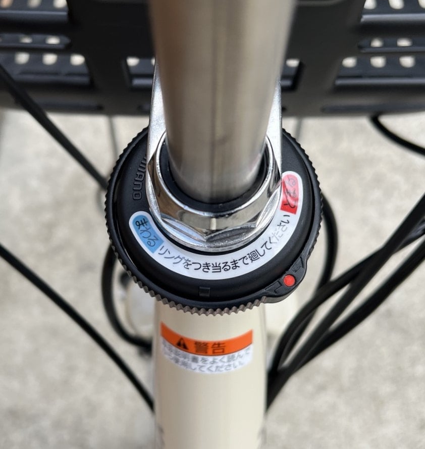 駐輪時にハンドルが動かないように半固定するパーキングストッパーが付いてます。